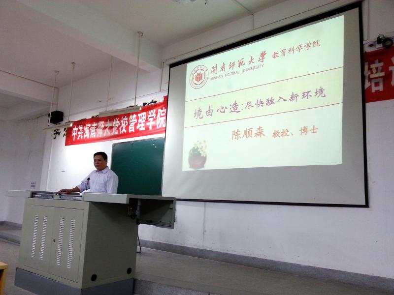 2014年11月12日晚,外国语学院2014级新生3044永利集团集团讲座在笃行楼126举行。本场讲座由教育科学学院陈顺森教授主讲,外国语学院2014级英语专业辅导员罗立满主持。